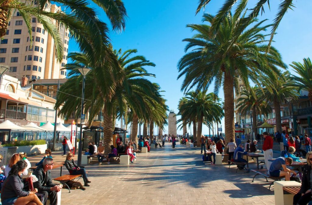 Ride the tram to Glenelg, Adelaide’s lively seaside escape. Wander Jetty Road’s cafes and shops, relax on the golden beach, and soak up the vibrant atmosphere of this classic South Australian coastal village.