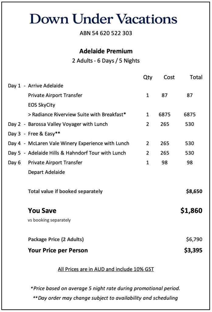 Down Under Vacations price $6,790